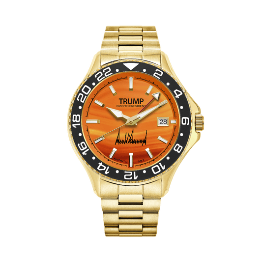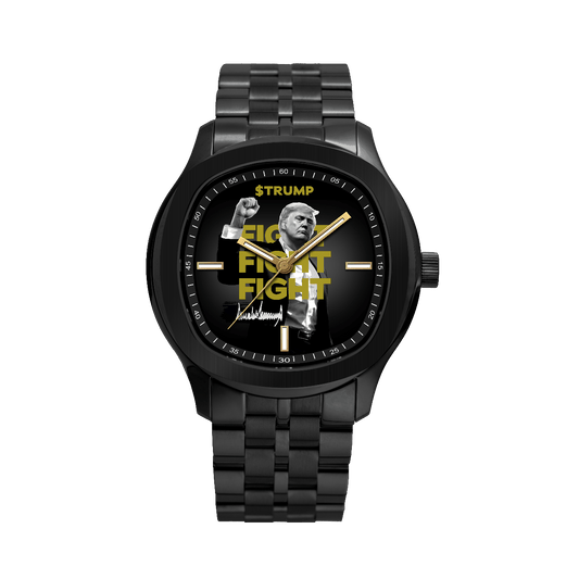The FIGHT FIGHT FIGHT Watch captures President Trump’s relentless fighting spirit & support for Crypto! Plated in 18 Karat Real Gold.