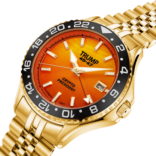 This limited edition Bitcoin Orange Watch is plated with the President’s favorite color: Gold. To be precise, 0.7 microns of beautiful 18 Karat Gold.