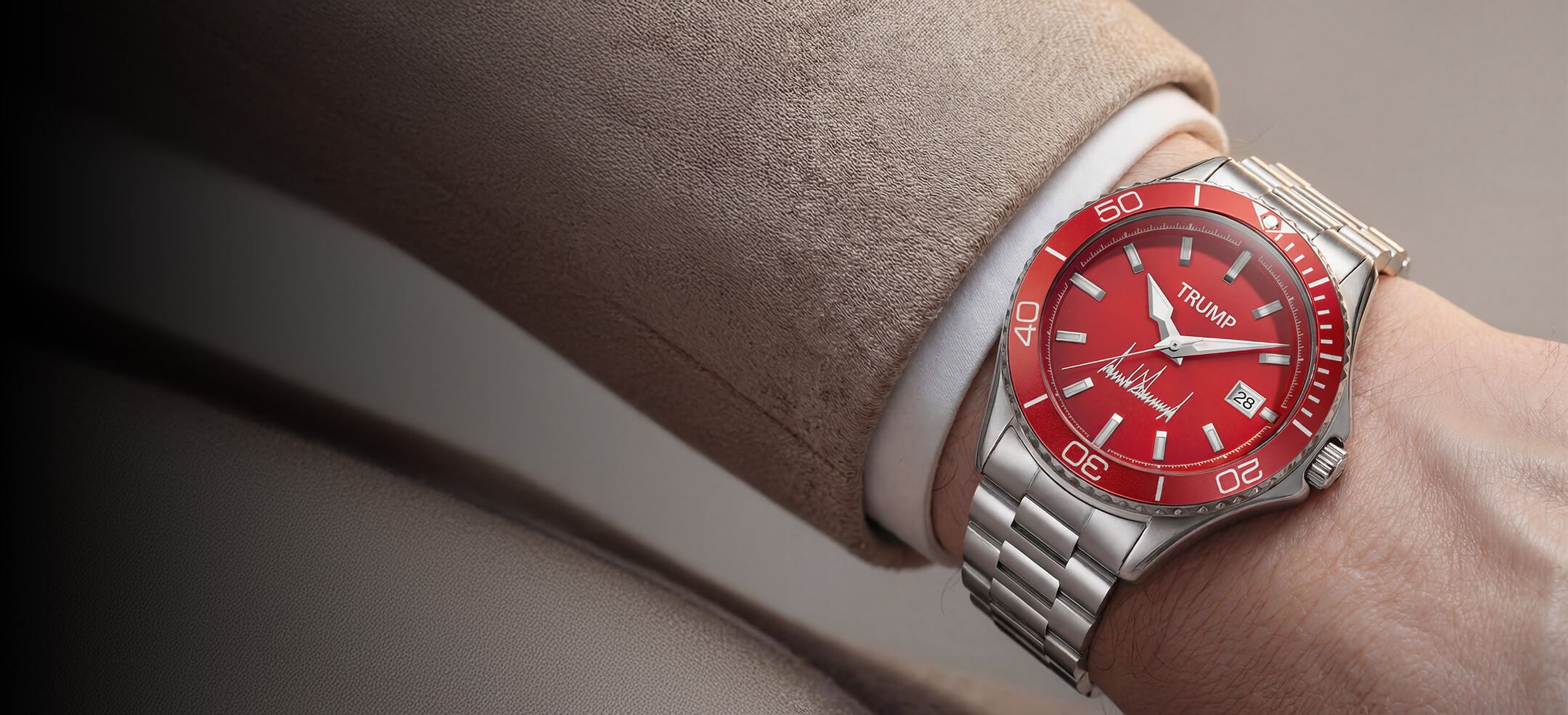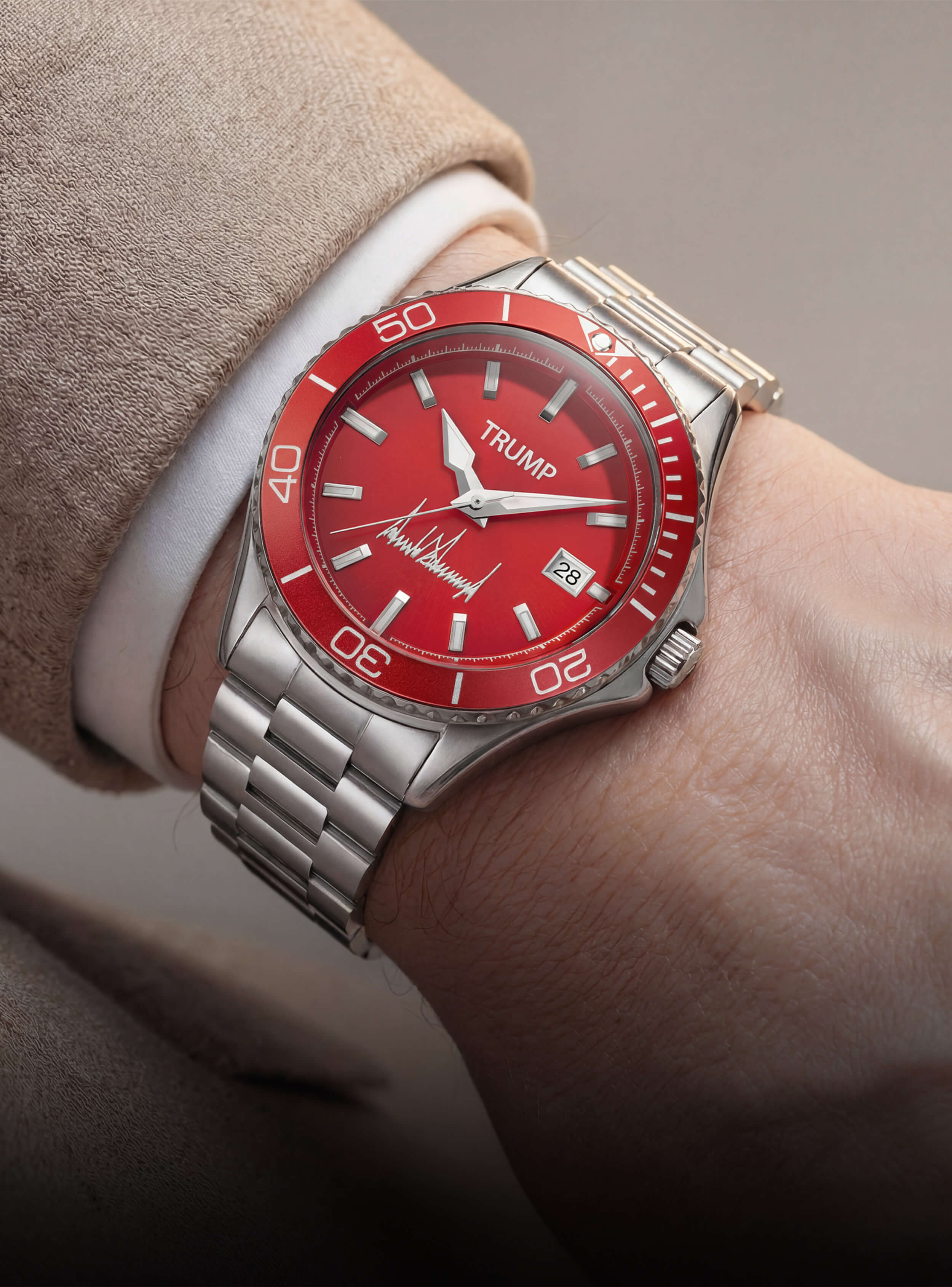 This Fight Fight Fight Watch also described as "Red Beauty" byt he President is the most popular Trump Watch. With it's bold red dial & clean legible dial, it is a strong statement of ambition and success.