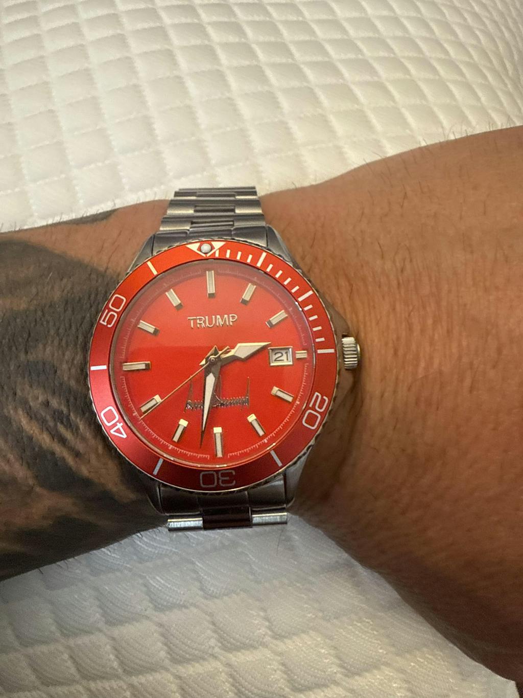 Designed in collaboration with the President, this bright-red dial is embossed with his iconic signature and name. A true statement of approval and support for the President.
