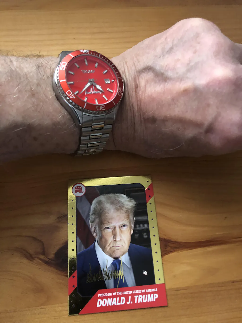 Designed in collaboration with the President, this bright-red dial is embossed with his iconic signature and name. A true statement of approval and support for the President.