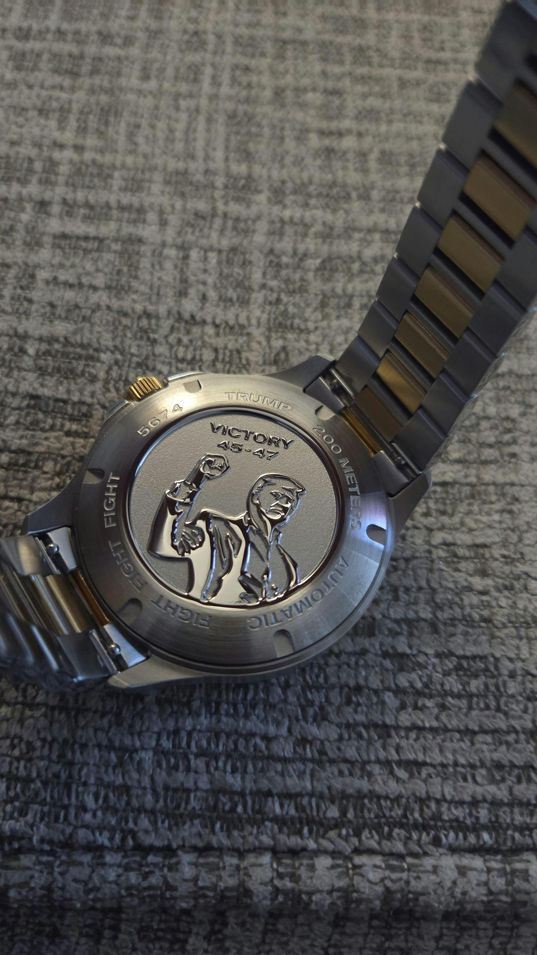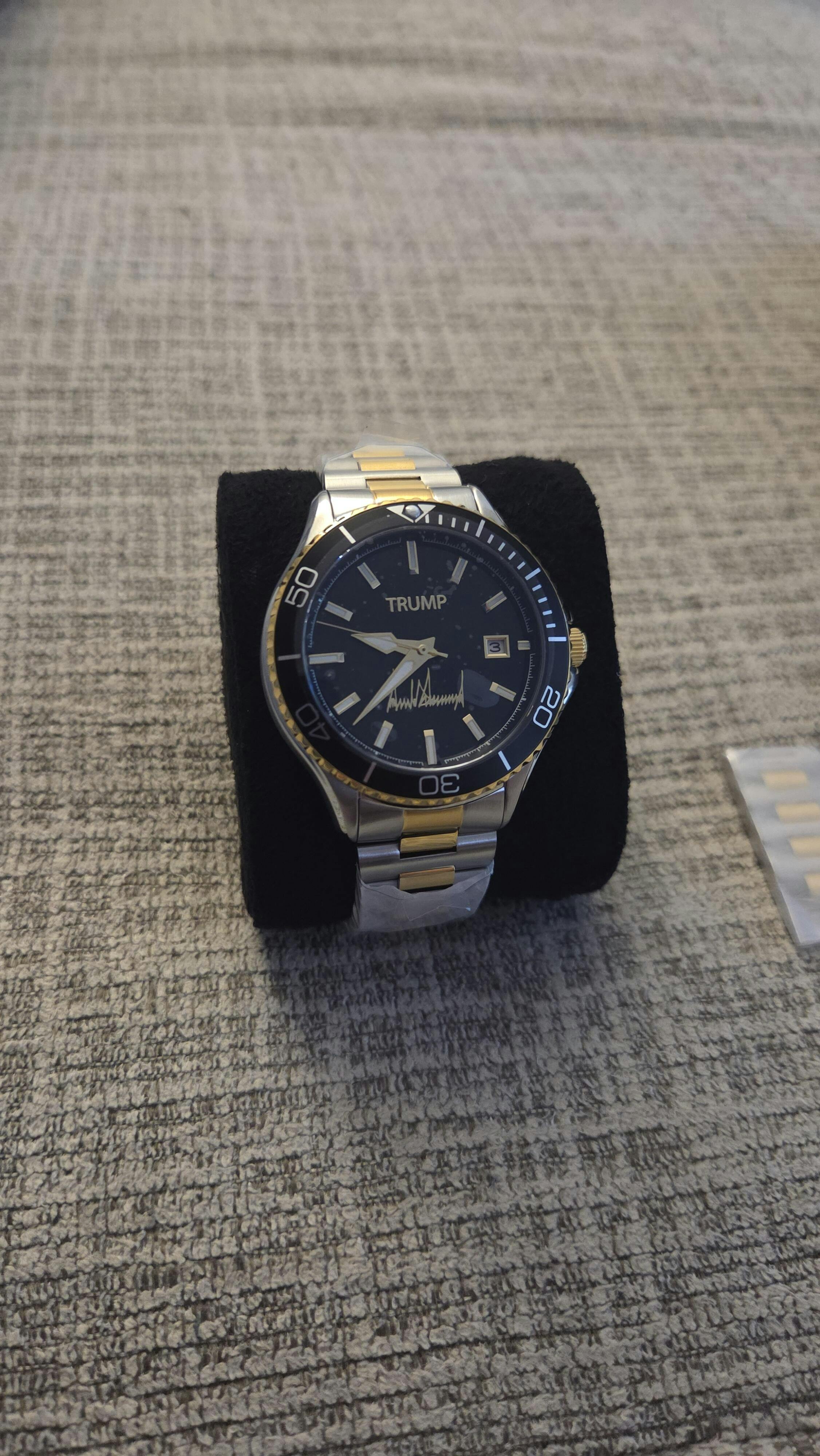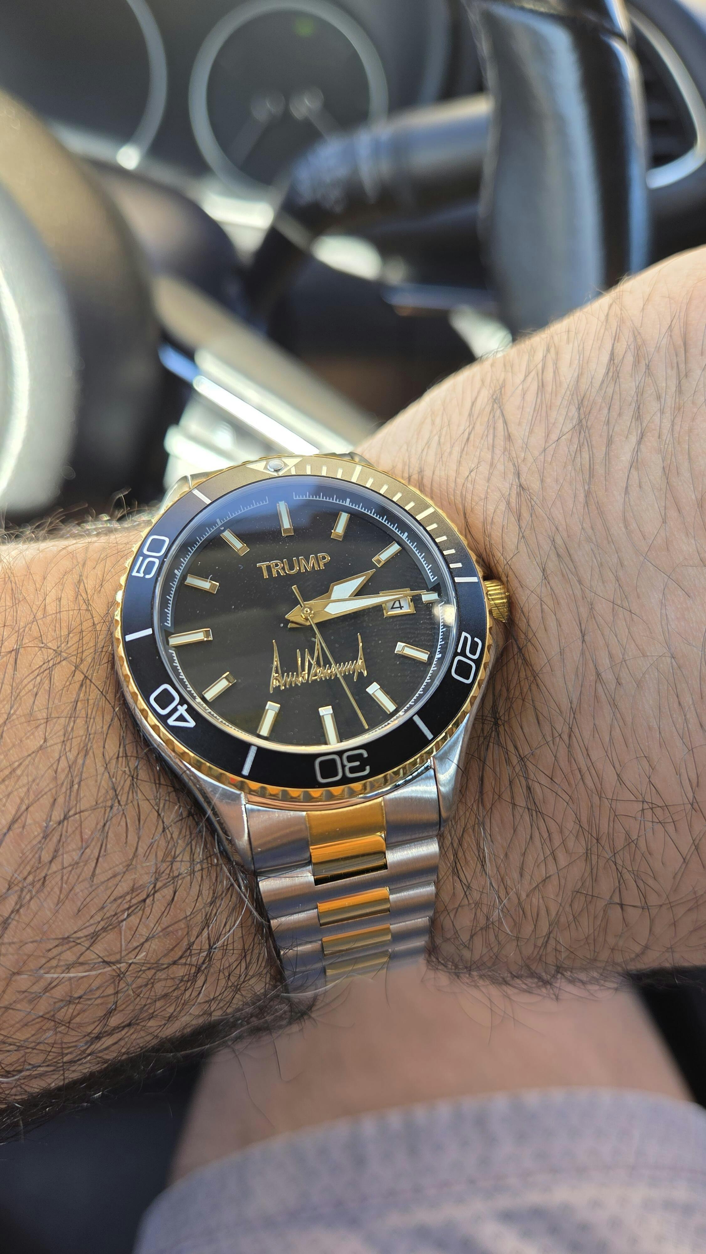 Designed in collaboration with the President, this black dial is embossed with his iconic signature & name in gold. A true statement of approval & support for the President.