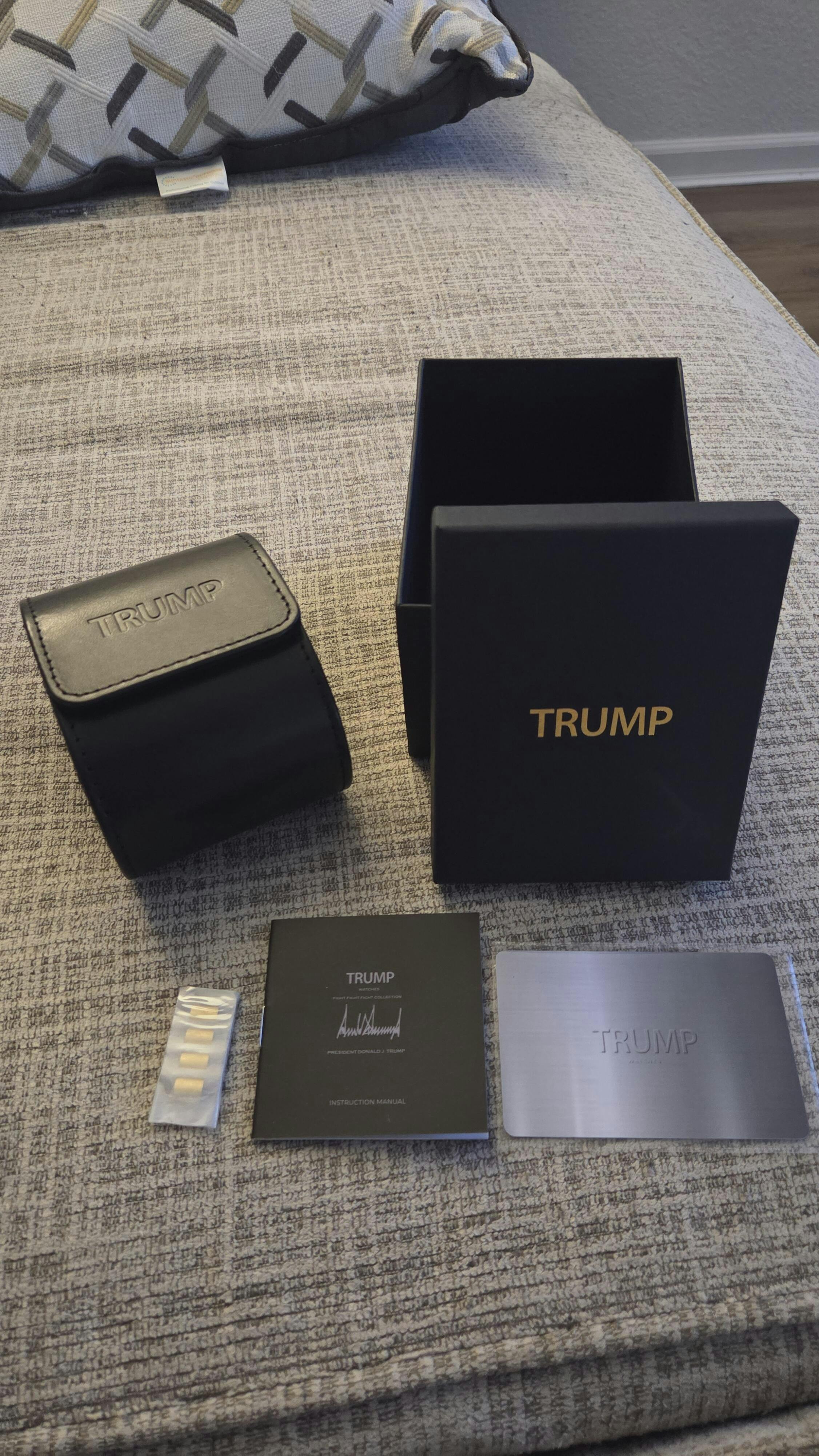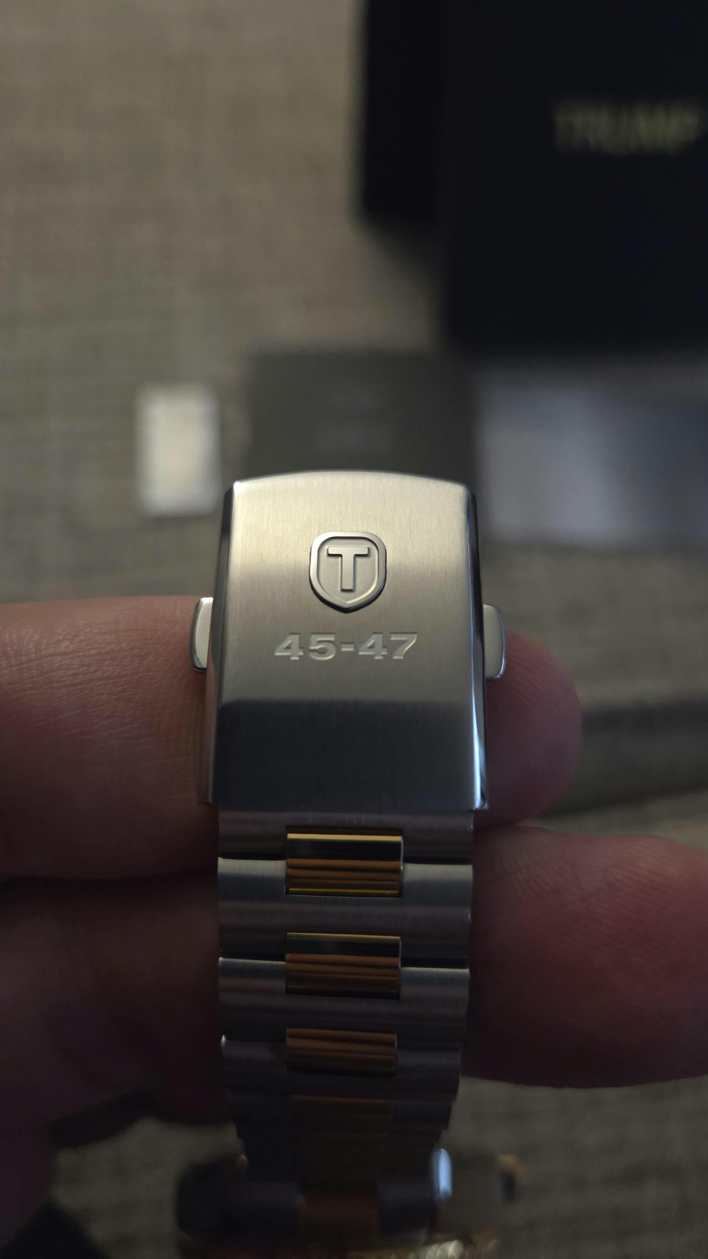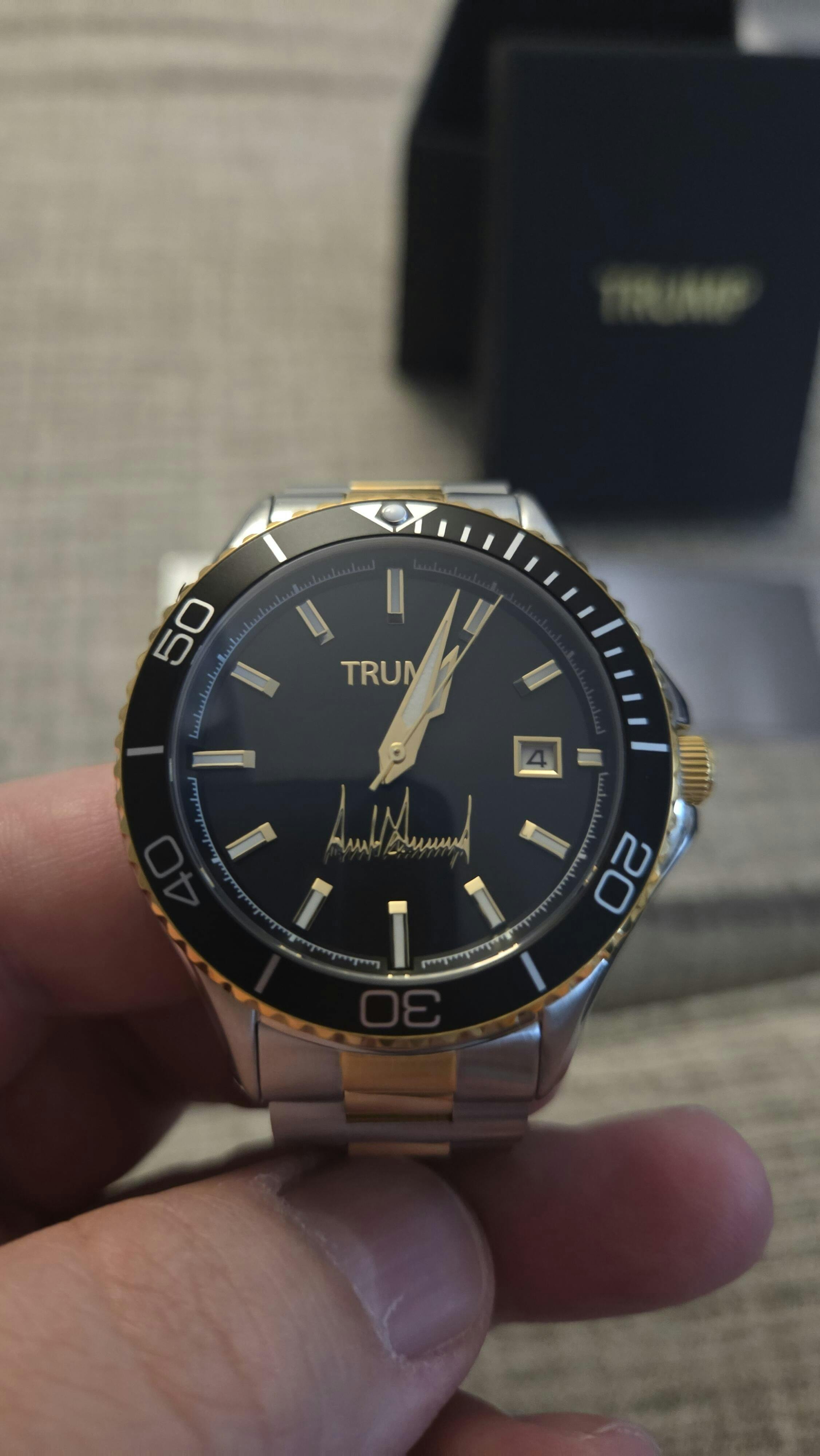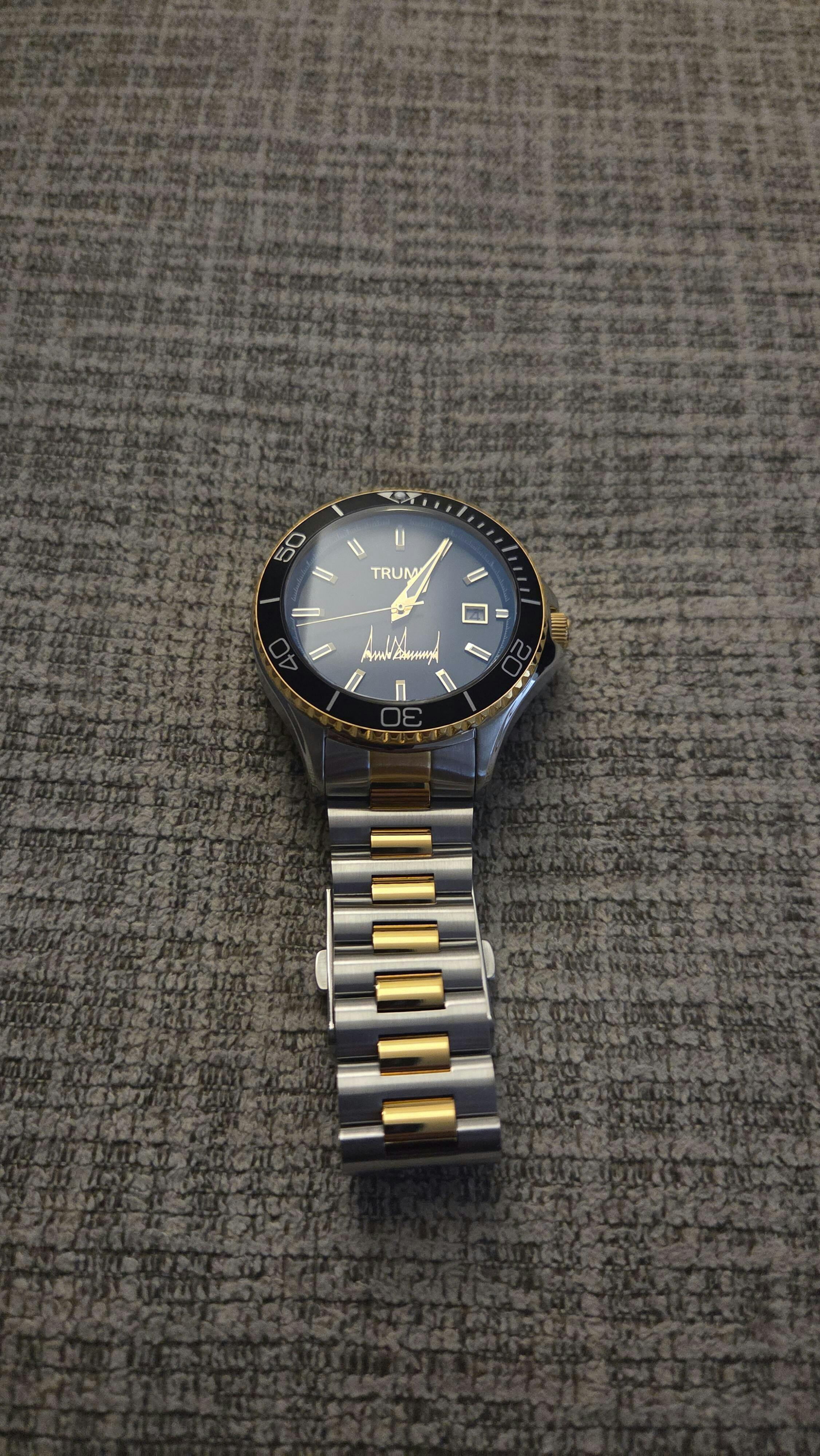 Designed in collaboration with the President, this black dial is embossed with his iconic signature & name in gold. A true statement of approval & support for the President.