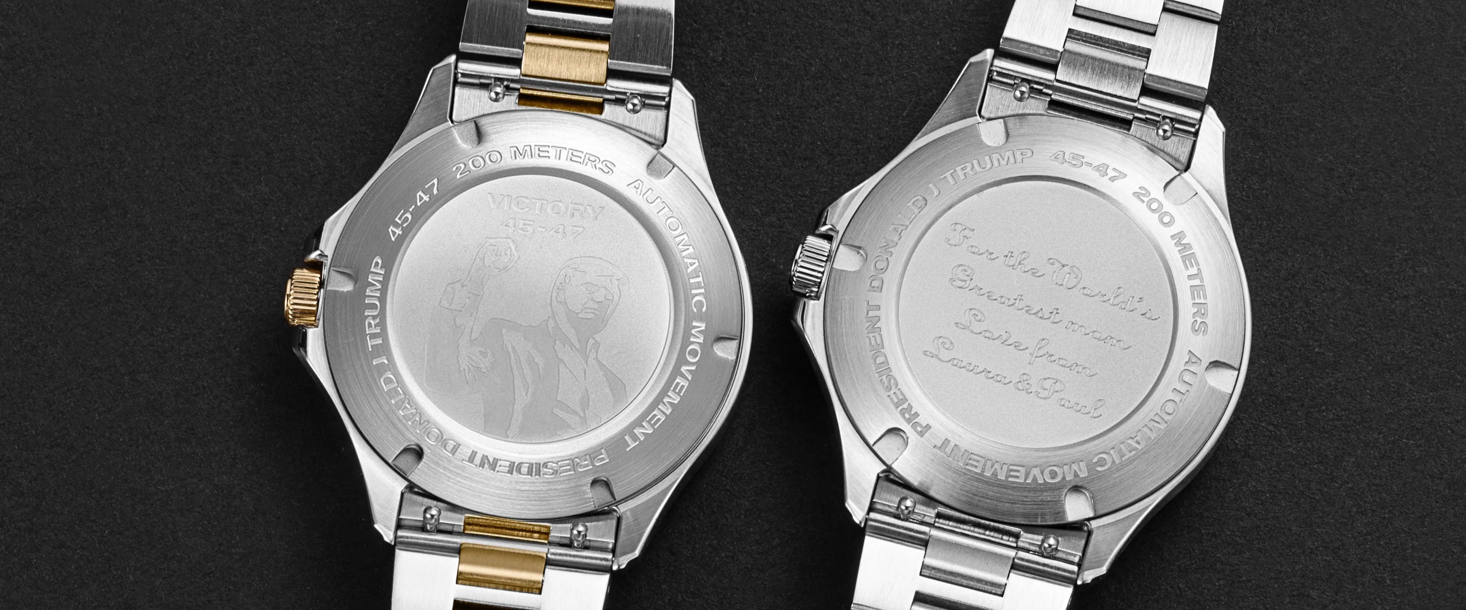 Why wear just any watch when you can make it YOUR OWN TRUMP WATCH? Customize your First Lady Watch with your favorite color, a bold statement, or even a special intimate message on the back of the watch. A watch that speaks for YOU, or for the special one in your life. Personalize it easily with our online watchmaker that will take your desires and create your special Trump watch. A timepiece that turns heads, starts conversations, and stands out—just like you. Make it bold. Make it yours. Make it TRUMP GREAT.
